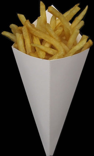 BLOW-OUT SALE Small Plus K-16 White Cardboard Cones Without Sauce Container, holds 7.5 oz.